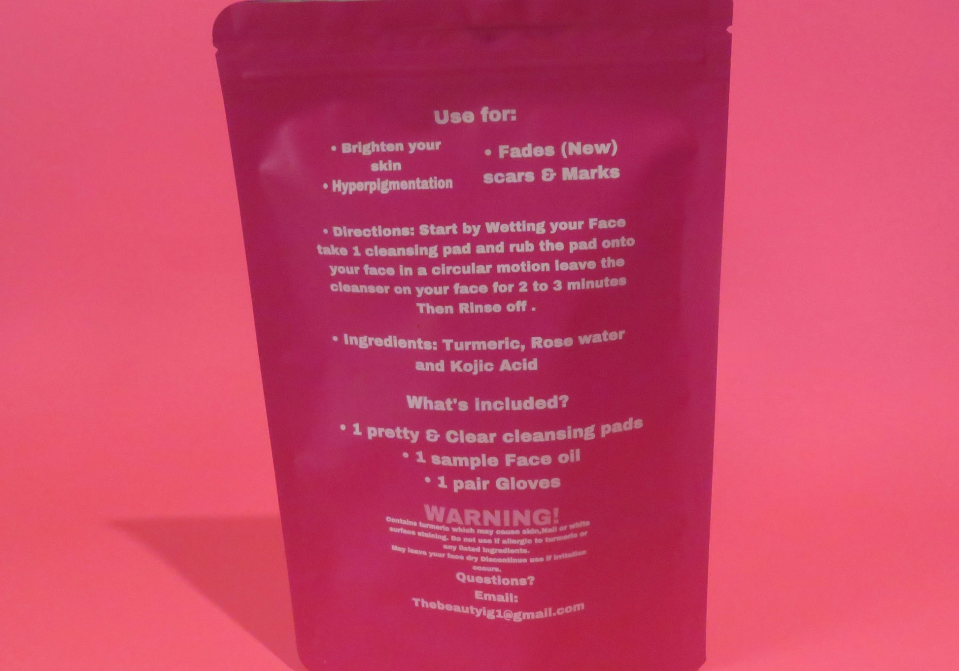 Then Rinse off - - Ingredients: Turmeric, Rose water and Kojic Acid